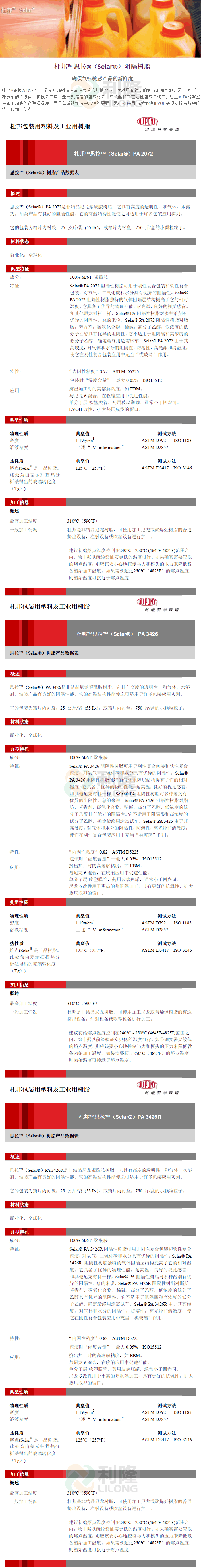 [塑料簡介:]利隆塑料專業經營杜邦PA12塑膠原料,阻隔尼龍PA12系列品牌塑膠原料,想要了解美國杜邦PA12塑料價格和聚酰胺PA12原料價格,尼龍PA12是什么材料的客戶,歡迎來電來函咨詢