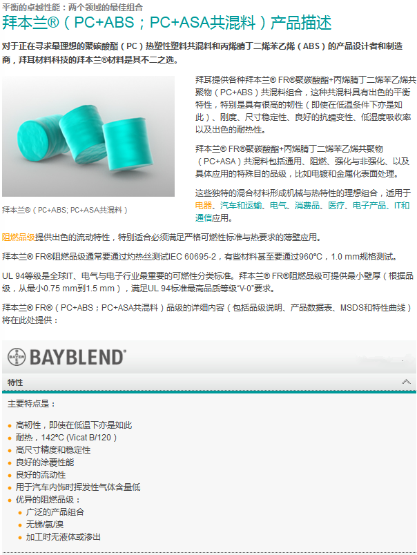>> 德國(guó)拜耳Bayblend(科思創(chuàng))系列PC/ABS塑膠原料