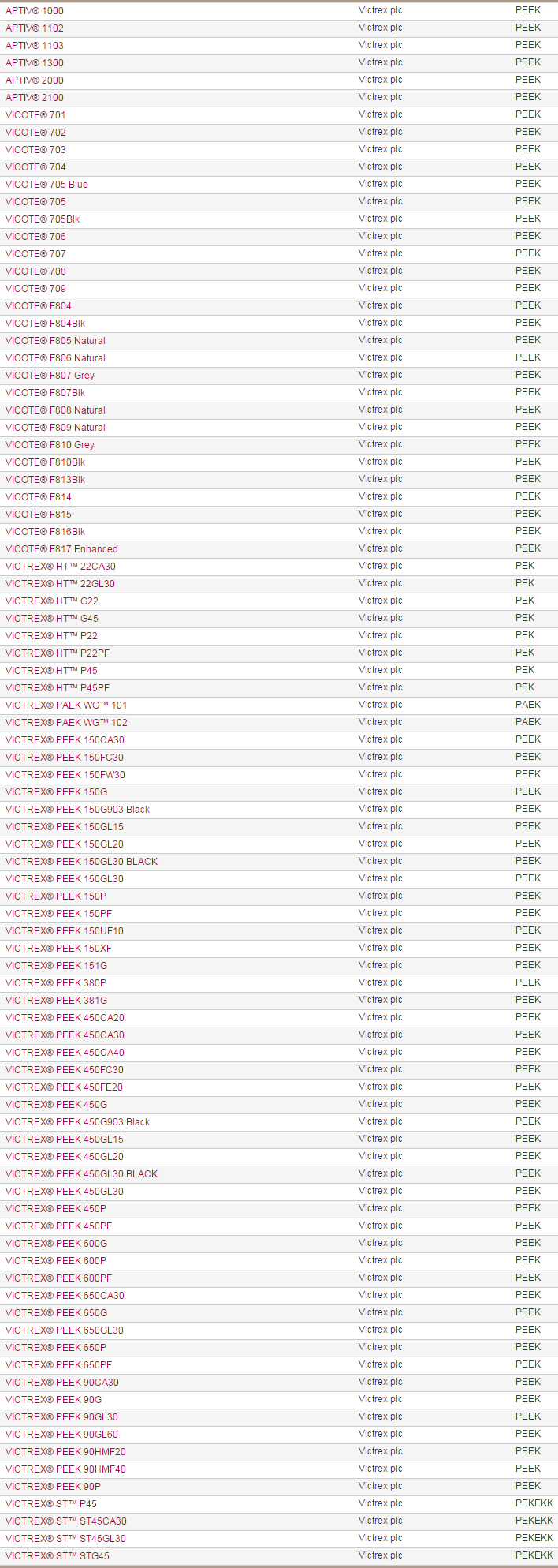 >> 英國(guó)威格斯VICTREX系列聚醚醚酮PEEK特種工程塑料