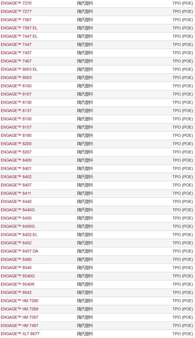 >> 美國陶氏ENGAGE品牌POE聚烯烴彈性體塑膠原料