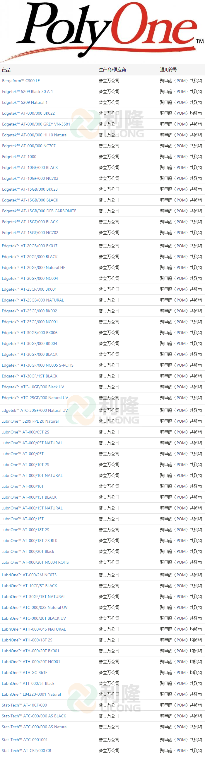 [塑料簡介:]利隆塑料專業經營美國普立萬POM聚甲醛POLYONE品牌塑膠原料,想要了解聚甲醛POM塑膠原料,普立萬POM價格,POM性能用途,POM型號和POM物性的客戶,歡迎來電來函咨詢