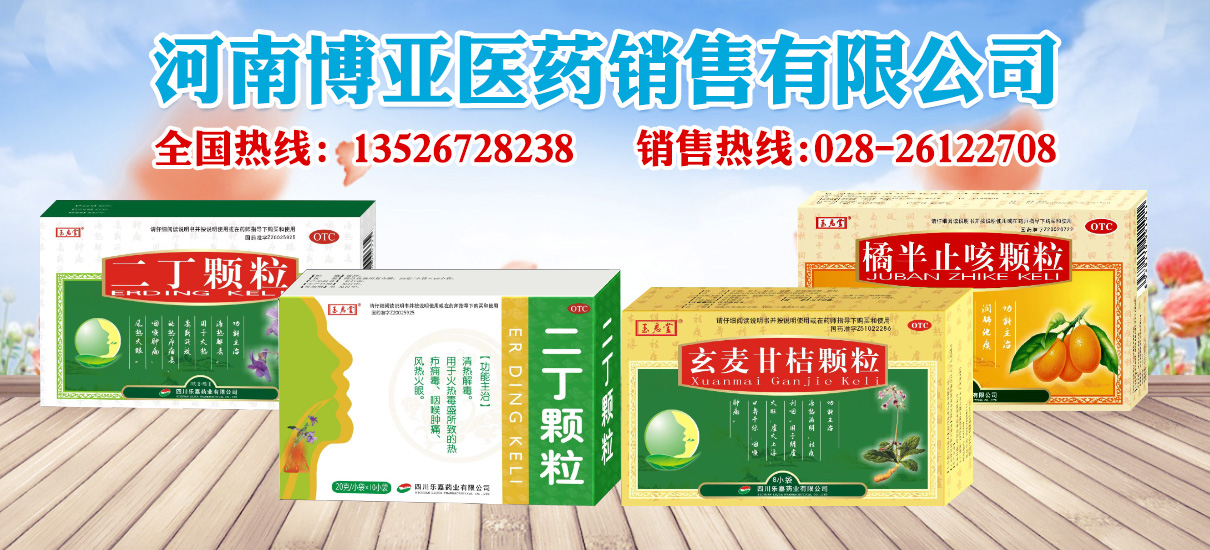 河南博亞醫(yī)藥銷售有限公司----二丁顆粒、橘半止咳顆粒、朱砂蓮膠囊、風寒咳嗽丸、玄麥甘桔顆粒、荊防顆粒、小柴胡顆粒、換骨丸、胃靈顆粒、小兒咳喘靈顆粒、心可舒膠囊、抗感解毒顆粒、鳶都感冒顆粒、小兒止咳糖漿、遼源七厘散、元胡止痛片、三七傷藥片等總經(jīng)銷。