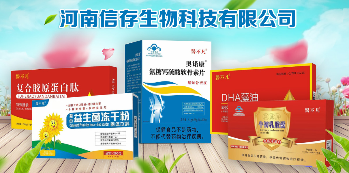 保健品招商代理,信存生物攜牛初乳、氨糖鈣硫酸軟骨素片、DHA藻油等,火熱招商中! 保健食品等大健康食品的市場需求一直很大。 對于老年人來說,身體機能逐漸衰退,對健康的關(guān)注度高,對具有增強免疫力、增加骨密度等功能的保健食品有較大需求。 中年人生活壓力大,工作繁忙,處于亞健康狀態(tài)的比例較高。他們往往需要一些保健食品來促進(jìn)自身健康。