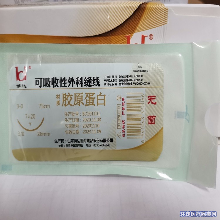 山東博達(dá)醫(yī)療用品股份有限公司是生產(chǎn)可吸收性外科縫線專業(yè)廠家,主要產(chǎn)品有可吸收縫合線 、內(nèi)窺鏡圈套線、穴位埋線、快吸收美容線、醫(yī)用羊腸線 膠原蛋白線以獨(dú)特的生物技術(shù)提取了健康哺乳動(dòng)物內(nèi)臟的膠原蛋白為基材,采用先進(jìn)獨(dú)特的工藝加工而成,線體的主要成分為高純度膠原蛋白,并獲得了國(guó)家發(fā)明專利,頒布了YZB/國(guó)6301-2013《可吸收性外科縫線》產(chǎn)品標(biāo)準(zhǔn),并通過了ISO9001:2008和ISO13485:2003質(zhì)量管理體系認(rèn)證。