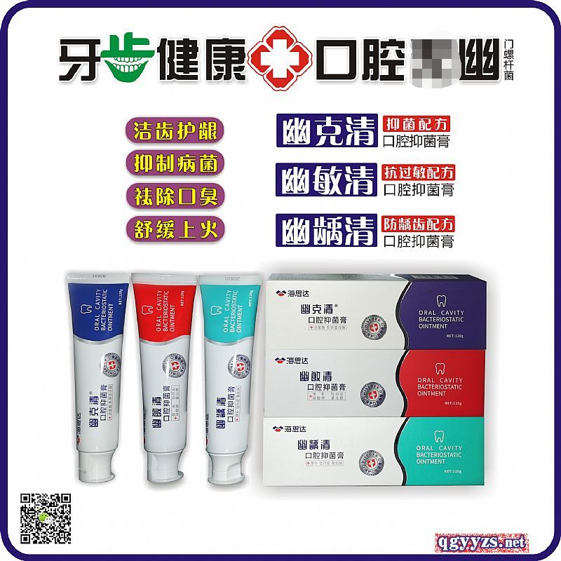 | 【主要成份】 | “幽克清”口腔抑菌膏(抑菌配方) ——主要成分:溶菌酶、乳鐵蛋白酶、金銀花、羅漢果、橘紅、二氧化硅、十二烷基硫酸鈉、羧甲基纖維素鈉、甘油、山梨醇、薄荷香精、三氯蔗糖。 “幽敏清”口腔抑菌膏(抗過敏配方) ——主要成分:厚樸、牡丹皮提取物、硝酸鉀、氯化鍶、二氧化硅、十二烷基硫酸鈉、羧甲基纖維素鈉、甘油、山梨醇、薄荷香精、三氯蔗糖。 “幽齲清”口腔抑菌膏(防齲齒配方) ——主要成分:厚樸、牡丹皮提取物、氟化鈉、二氧化硅、十二烷基硫酸鈉、羧甲基纖維素鈉、甘油、山梨醇、薄荷香精、三氯蔗糖。 |
