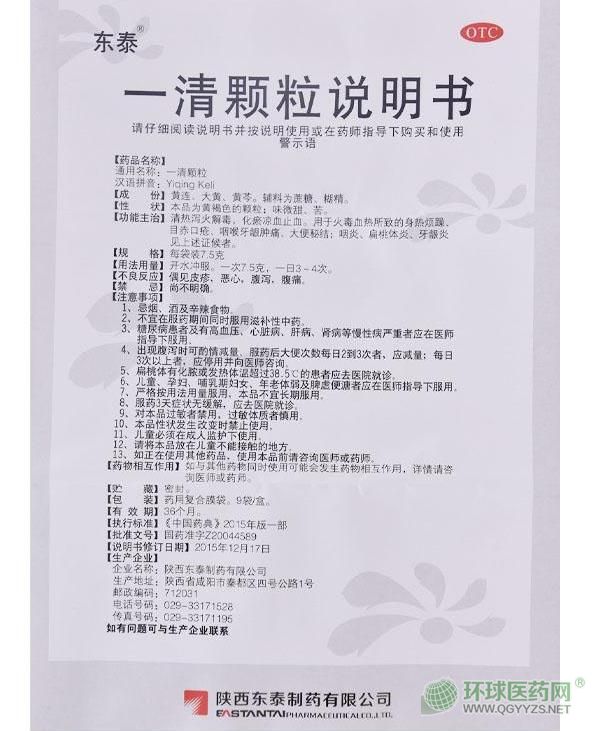 東泰一清顆粒說明書圖片版(2015年版)