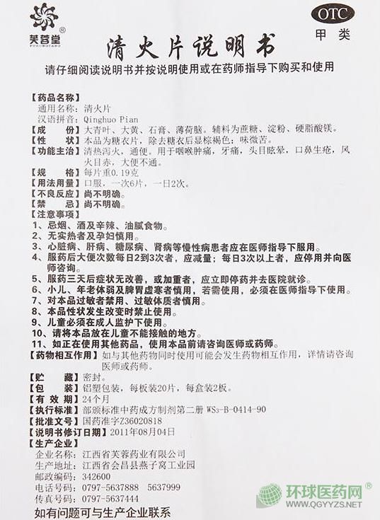 芙蓉堂清火片說明書文字版