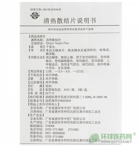 【藥品名稱】 清熱散結(jié)片(鵝城)