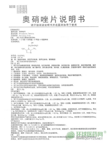 湖南九典奧硝唑片說明書圖片版