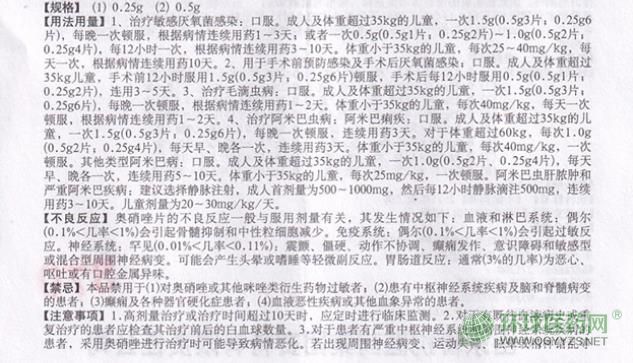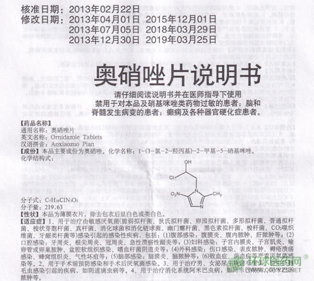 山東魯抗(奇舟)奧硝唑片說明書圖片版