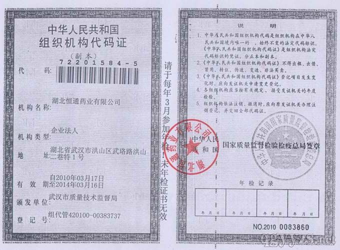 - 湖北恒通藥業(yè)有限公司組織機(jī)構(gòu)代碼證副本