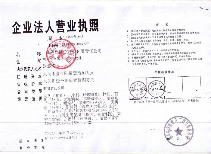 [企業(yè)法人]:葫蘆島國帝藥業(yè)有限責(zé)任公司
