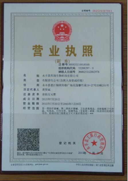 江西邦琦堂生物科技有限公司,主要經(jīng)營類醫(yī)療器械、第二類醫(yī)療器械、衛(wèi)生消毒用品、皮膚黏膜衛(wèi)生用品、化妝品、日用百貨、保健用品(非食用)銷售(依法須經(jīng)批準的項目;經(jīng)相關(guān)部門批準后方可開展經(jīng)營活動),于2015年7月20日在吉安工商局登記注冊,業(yè)務(wù)經(jīng)理是黃賢斌,公司注冊資本100(萬元)。我們有好的產(chǎn)品和專業(yè)的銷售和技術(shù)團隊,在公司發(fā)展壯大的1年里,我們?yōu)榭蛻籼峁┖玫漠a(chǎn)品、良好的技術(shù)支持、健全的售后服務(wù),永豐縣邦琦生物科技有限公司是吉安生物制品行業(yè)知名企業(yè),如果您對我公司的產(chǎn)品服務(wù)有興趣,請在線留言或者來電咨詢。