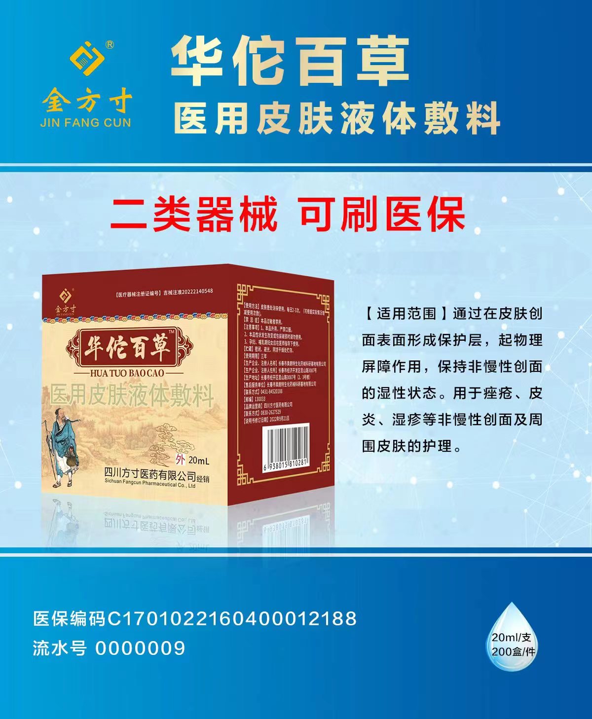 產品用途: 通過在皮膚創面表面形成保護層,起物理屏障作用,保持非慢性創面的濕性狀態。用于痤瘡、皮炎、濕疹等非慢性創面及周圍皮膚的護理。