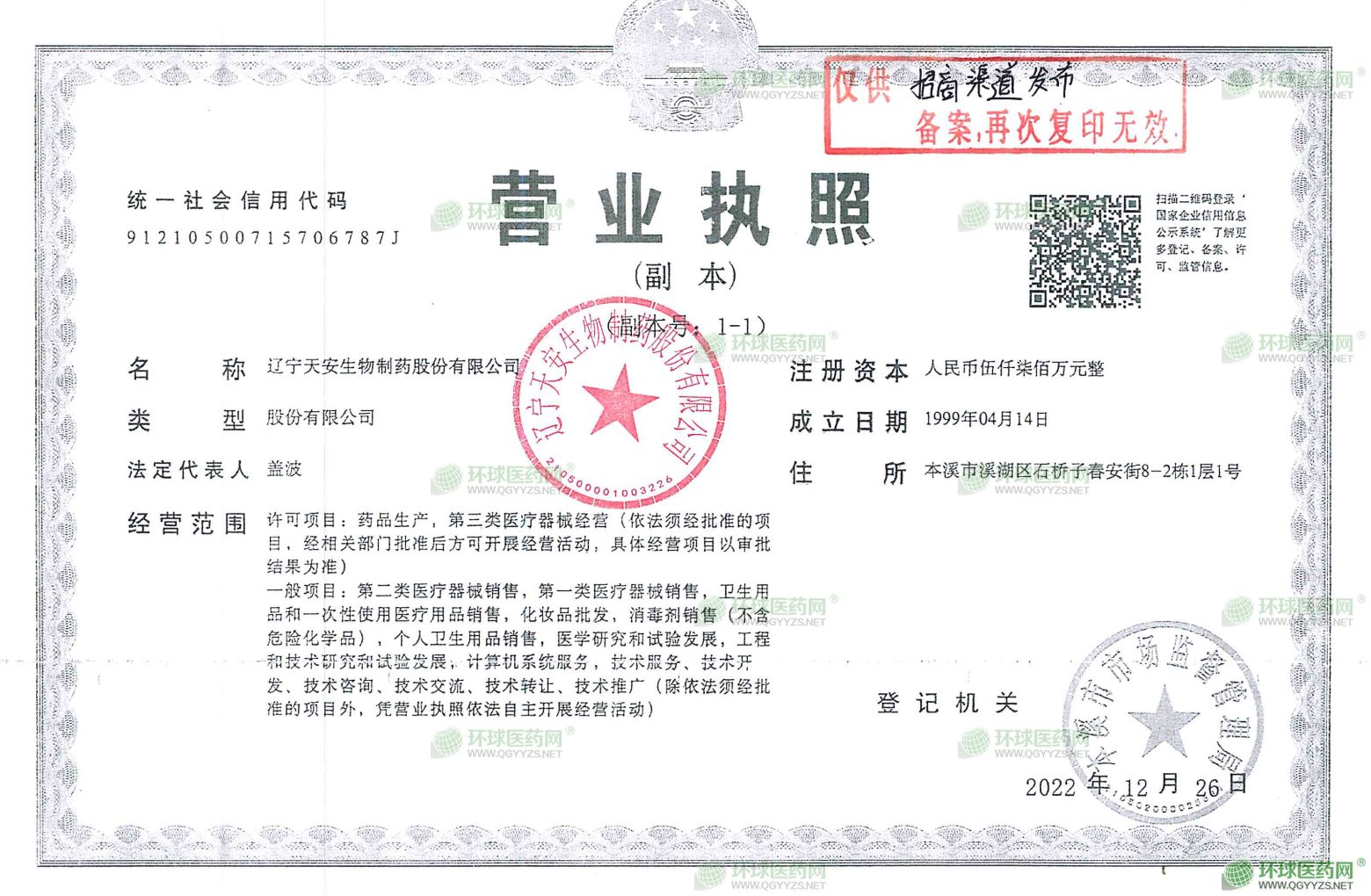 遼寧天安生物制藥股份有限公司