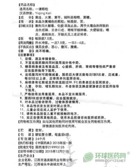 - 本頁面信息僅供參考,請以產(chǎn)品實際附帶說明書為準。 江西京通美聯(lián) 一清顆粒 說明書圖片版 江西京通美聯(lián)一清顆粒 說明書文字版