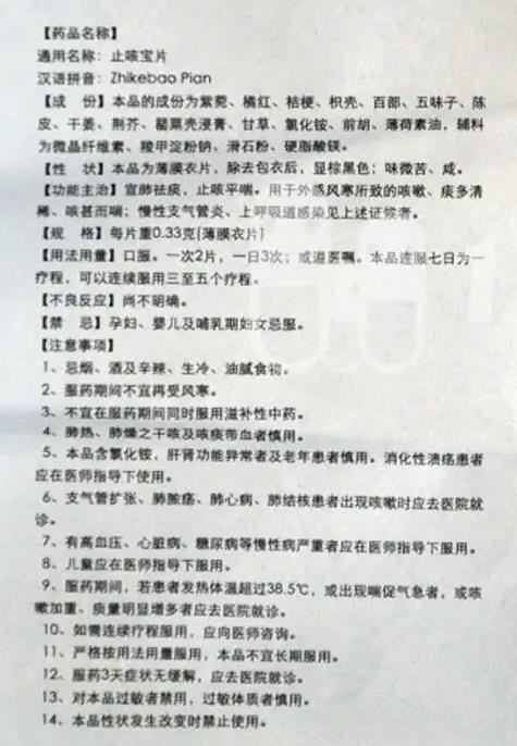 - 本頁面信息僅供參考,請以產(chǎn)品實際附帶說明書為準(zhǔn)。 廣東特一藥業(yè) 止咳寶片 包裝 廣東特一藥業(yè)止咳寶片使用說明書 (