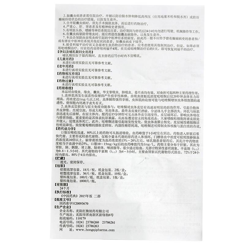 西藥、處方藥、醫(yī)保甲類。適用于各種血吸蟲病、華支睪吸蟲病、肺吸蟲病、姜片蟲病以及絳蟲病和囊蟲病。沈陽(yáng)紅旗制藥有限公司、南京制藥廠有限公司等多家企業(yè)生產(chǎn)。目前,沈陽(yáng)紅旗制藥有限公司多款藥品在環(huán)球醫(yī)藥網(wǎng)招商。【藥品名稱】