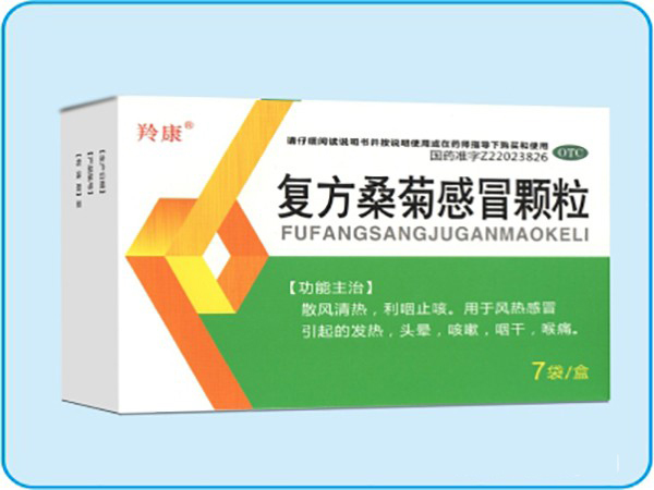 復方桑菊感冒顆粒,中成藥名。由桑葉、野菊花、一枝黃花、枇杷仁、桔梗、蘆根、甘草、薄荷油組成。具有散風清熱,利咽止咳的功效。用于風熱感冒引起的發熱,頭暈,咳嗽,咽干,喉痛。