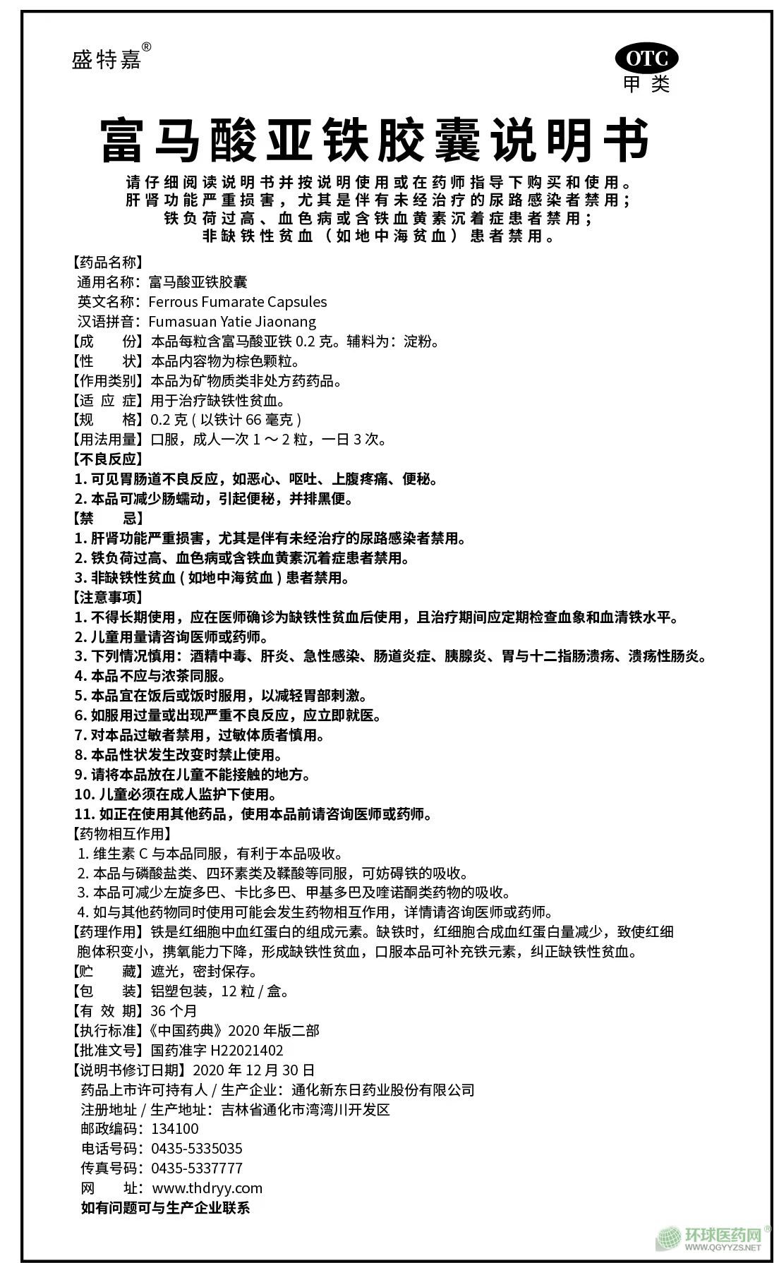 • 品名:富馬酸亞鐵膠囊缺鐵性貧血