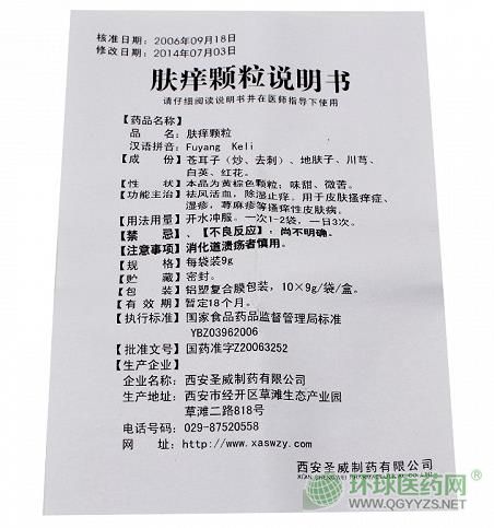 膚癢顆粒,中成藥名。由蒼耳子(炒、去刺)、地膚子、川芎、紅花、白英組成。具有祛風活血、除濕止癢的功效。用于皮膚瘙癢癥、濕疹、蕁麻疹等瘙癢性皮膚病。