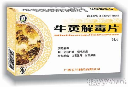 牛黃解毒片,中成藥名。由人工牛黃、雄黃、石膏、大黃、黃芩、桔梗、冰片、甘草組成。