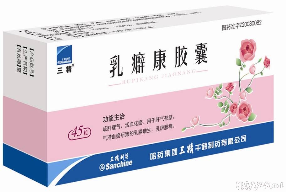 乳癖康膠囊,中成藥名。由大青葉、大黃、石膏、薄荷腦組成。具有疏肝理氣,活血化瘀的功效。用于肝氣郁結,氣滯血瘀所致的乳腺增生,乳房脹痛。用法用量:口服,一次5粒,一日3次;或遵醫囑。性狀:本品為硬膠囊,內容物為棕色至棕褐色的顆粒和粉末;味微苦。