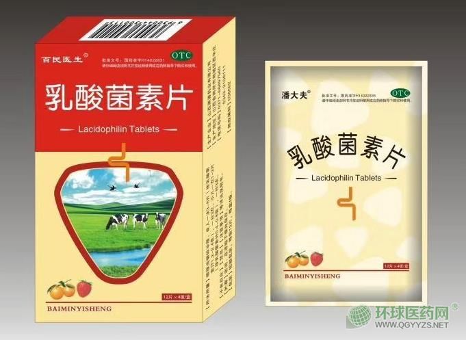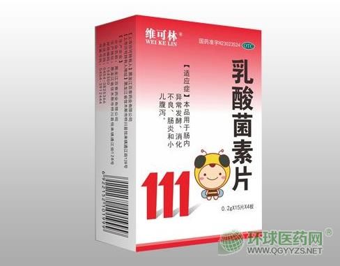 乳酸菌素片,適應癥為用于腸內異常發酵、消化不良、腸炎和小兒腹瀉。本品每片含乳酸菌素1.2克。輔料為淀粉、環拉酸鈉、可可粉、硬脂酸鎂、滑石粉。