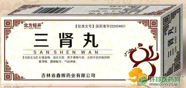 三腎丸,補腎益精,溫壯元陽。用于腎精虧損,元陽不足所致的陽萎滑精,腰膝酸冷,氣短神疲。環球醫藥網為您提供三腎丸的招商代理信息,三腎丸品牌規格劑型等信息,以及三腎丸等產品的招商廠家信息。
