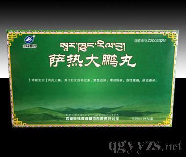 薩熱大鵬丸,中成藥名。由訶子、安息香、蜀葵花、朱砂、山礬葉、珍珠粉等組成。具有清熱止痛的功效。用于婦女白帶過多,男性血尿,寒熱腎病,急性腹痛,尿道感染。