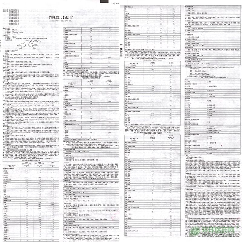 3、使用本品治療時,不必監測血漿托吡酯濃度以達到最佳療效。本品加用苯妥英鈉治療時,僅有極少數病例需調整苯妥英鈉的用量以達到最佳臨床療效。在本品加用治療期間,加用或停用苯妥英和卡馬西平時可能需要調整本品的劑量。