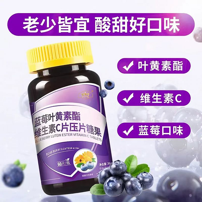 • 品名:藍莓葉黃素酯維生素C片壓片糖果