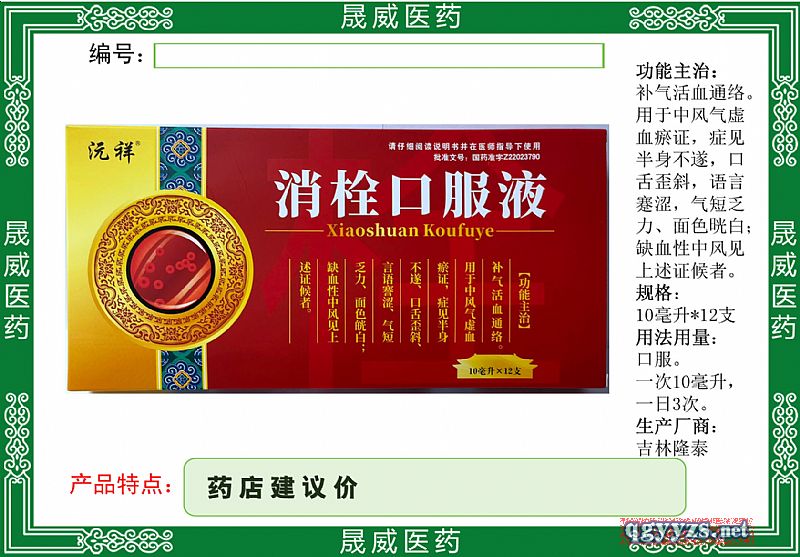 • 品名:消栓口服液