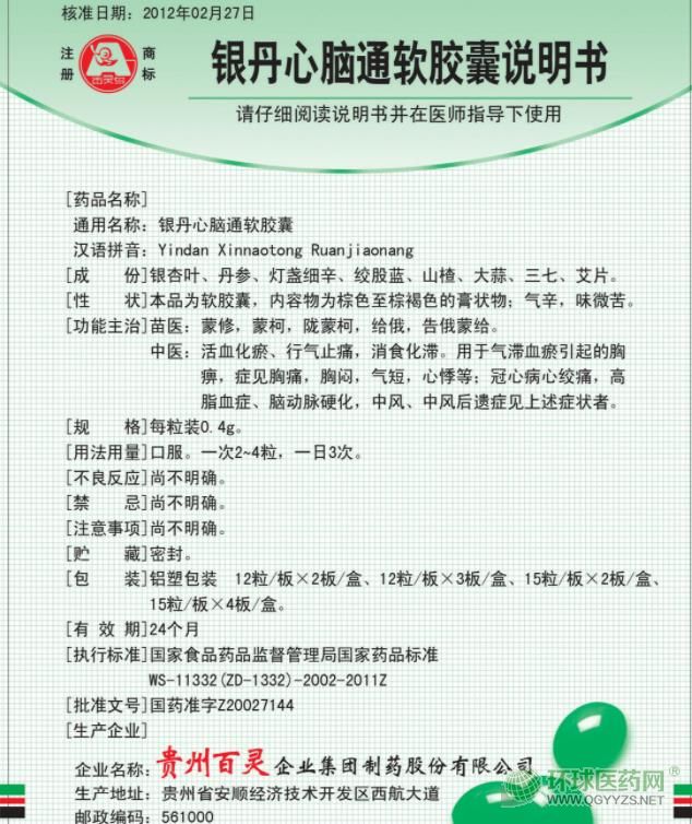 - 本頁面信息僅供參考,請以產品實際附帶說明書為準。 貴州百靈 銀丹心腦通軟膠囊 (百靈鳥)說明書文字版…