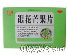 銀花芒果片具有疏風清熱,止咳化痰的功效。用于外感風熱所致的咽痛,喉癢,咳嗽,及上呼吸道感染見有上述癥狀者。主要成份有金銀花、芒果葉、蒲公英、桔梗、百部、陳皮、甘草。輔料為羧甲淀粉鈉、硬脂酸鎂。