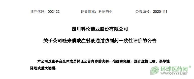 科倫藥業唑來膦酸注射液通過仿制藥一致性評價