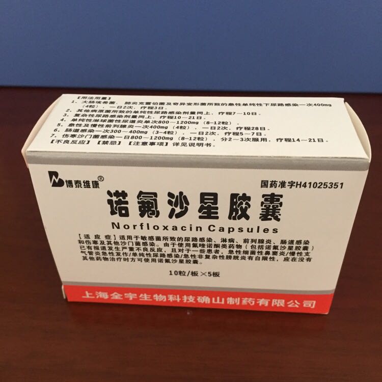 諾氟沙星(Norfloxacin,又名Noroxin、Fulgram),別名:力醇羅、氟哌酸、淋克星。其化學(xué)名為1-乙基-6-氟-1,4-二氫-4-氧代-7-(1-哌嗪基)-3-喹啉羧酸。本品為第二代喹諾酮類抗菌藥,會(huì)阻礙消化道內(nèi)致病細(xì)菌的DNA螺旋酶的作用,阻礙細(xì)菌DNA復(fù)制,對(duì)細(xì)菌有抑制作用。是治療腸炎痢疾及泌尿系感染的常用藥。此藥對(duì)未成年人骨骼形成有延緩作用,會(huì)影響到發(fā)育,故禁止未成年人服用。