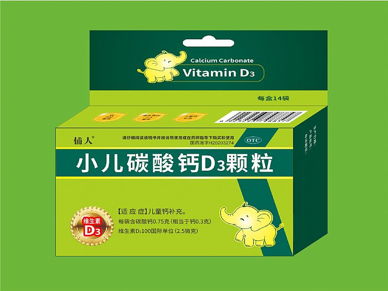 • 產(chǎn)品規(guī)格:每袋含碳酸鈣0.75克(相當于鈣0.3克);維生素D3100國際單位(2.5微克),每袋1g