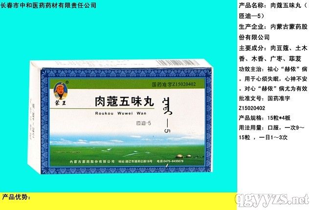 • 產(chǎn)品:肉蔻五味丸 國家醫(yī)保