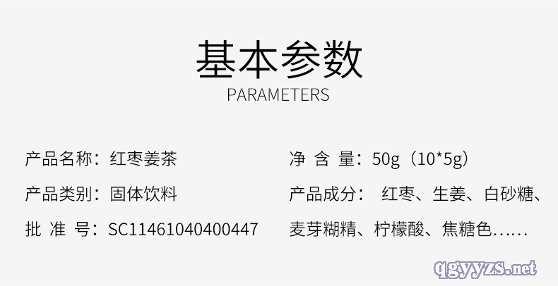 | 主要成分 | 紅棗、生姜、白砂糖、麥芽糊精、檸檬酸、焦糖色、食用香精 |
