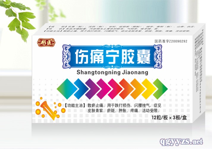 | 功能主治 | 傷痛寧膠囊作用/功效:散瘀止痛。用跌打損傷,閃腰挫氣,癥見皮膚青紫、瘀斑、腫脹、疼痛、活動受限。 |