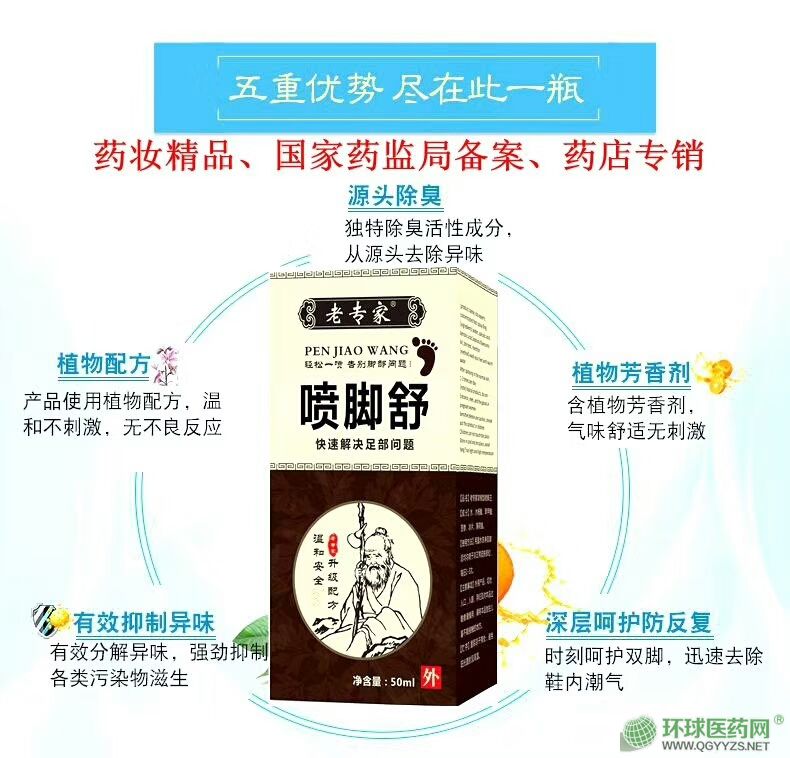 | 作用機(jī)理 | 噴劑,外部給藥深入滲透、有效抑制腳部細(xì)菌緩解瘙癢,脫皮,爛腳丫等癥狀草本植物精華、溫和細(xì)膩不刺激,長效保養(yǎng)。 |