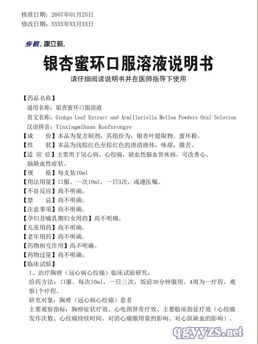 | 通用名稱(chēng) | 銀杏蜜環(huán)口服溶液 |
