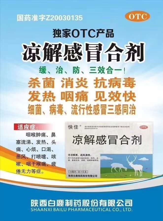| 產(chǎn)品賣點 | 一:優(yōu)質(zhì)專利產(chǎn)品,市場控銷產(chǎn)品。 二:中藥三類新藥。 三:涼解感冒合劑是根據(jù)國內(nèi)**中醫(yī)內(nèi)科教授任繼學48年的臨床總結(jié)提煉而來。 四:三感同治,細菌性感冒,病毒性感冒,流行性感冒。 五:有效防治,甲型流感病毒,手足口病,單純皰疹病毒,流行性腮腺炎病毒。 六:純中藥制劑,*****,無禁忌人群。孕婦,哺乳期,兒童老人均可使用。 |