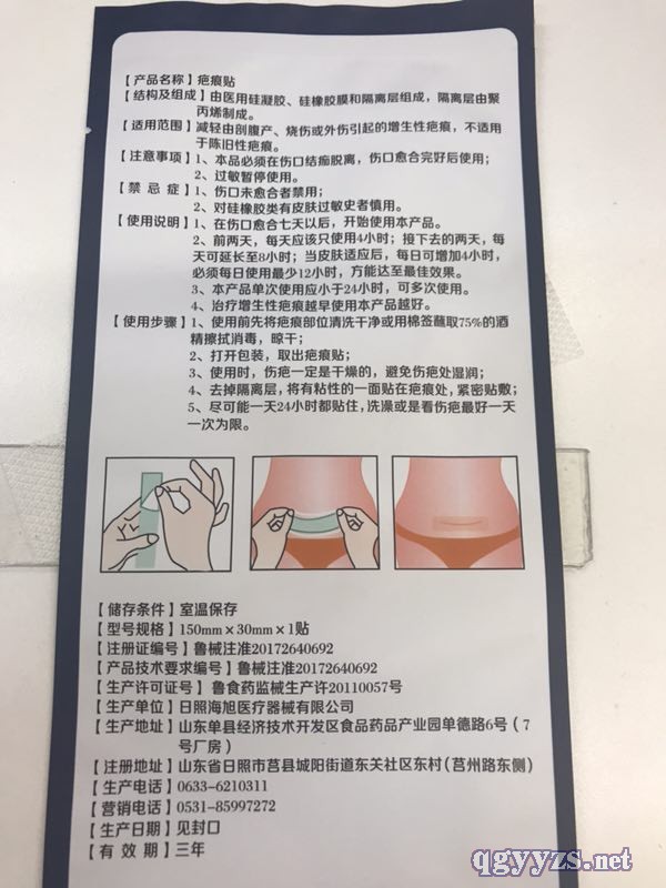 | 其它說明 | 疤痕又叫瘢痕,是機體在外傷、燒燙傷、手術等以后出現的正常反應,有一部分瘢痕體質的患者疤痕會更加嚴重。疤痕貼是治療疤痕的一種手段,除此之外還有外用藥物、激光甚至手術等等。疤痕貼尤其用在有張力的部位,效果會更好,比如在胳膊肘、膝蓋或者面部口周等等。因為貼敷以后,會減輕疤痕部位的張力,并且本身又有祛疤作用,所以效果不錯,我們要根據具體的疤痕情況來選擇。 |
