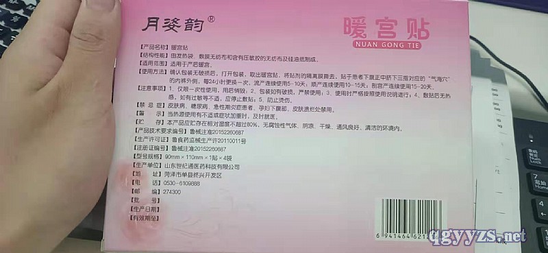| 補(bǔ)充說(shuō)明 | 暖宮貼內(nèi)部主要成分是鐵粉、水、木粉、活性炭、食鹽等, 可在氧分子的作用下發(fā)生放熱反應(yīng),產(chǎn)生紅外線輻射,*高溫度65度,平均溫度53度,持續(xù)時(shí)間不少于12小時(shí)。 臨床應(yīng)用不良反應(yīng)少,**可靠。 注意不要和皮膚直接接觸,若感覺(jué)溫度過(guò)熱或發(fā)現(xiàn)皮膚起皰則停止使用。 |
