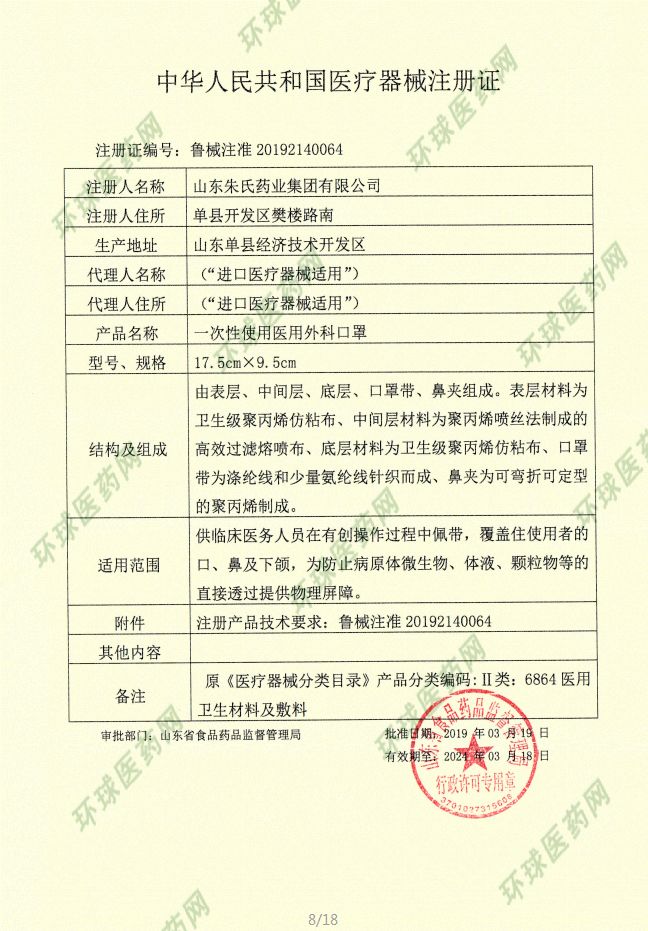 批準文號: 魯械注準20192140064 【驗證真?zhèn)?/a>】