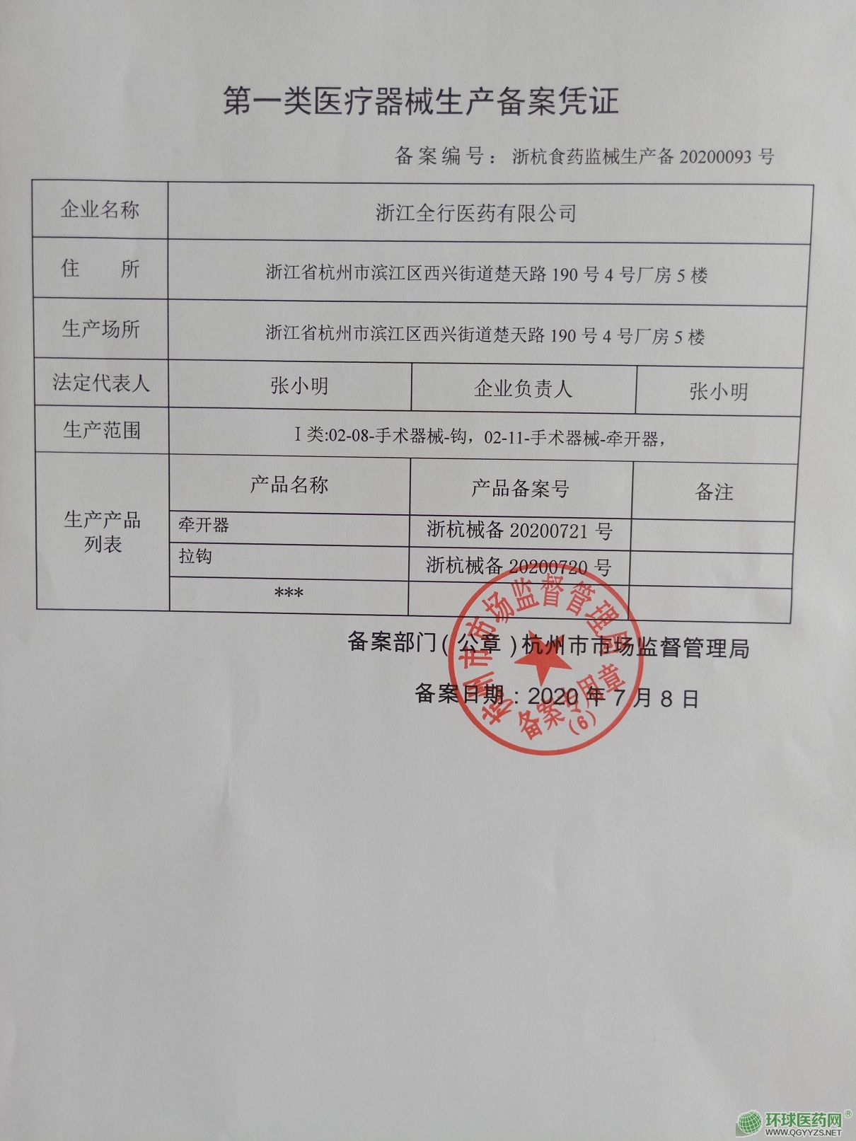 批準文號: 浙杭械備20200721號 【驗證真?zhèn)?/a>】