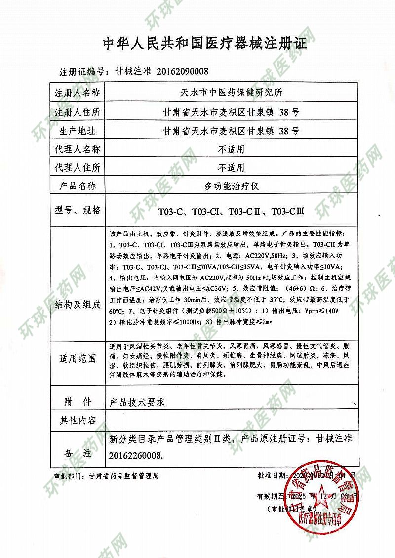 批準(zhǔn)文號: 甘械注準(zhǔn)20162090008 【驗證真?zhèn)?/a>】