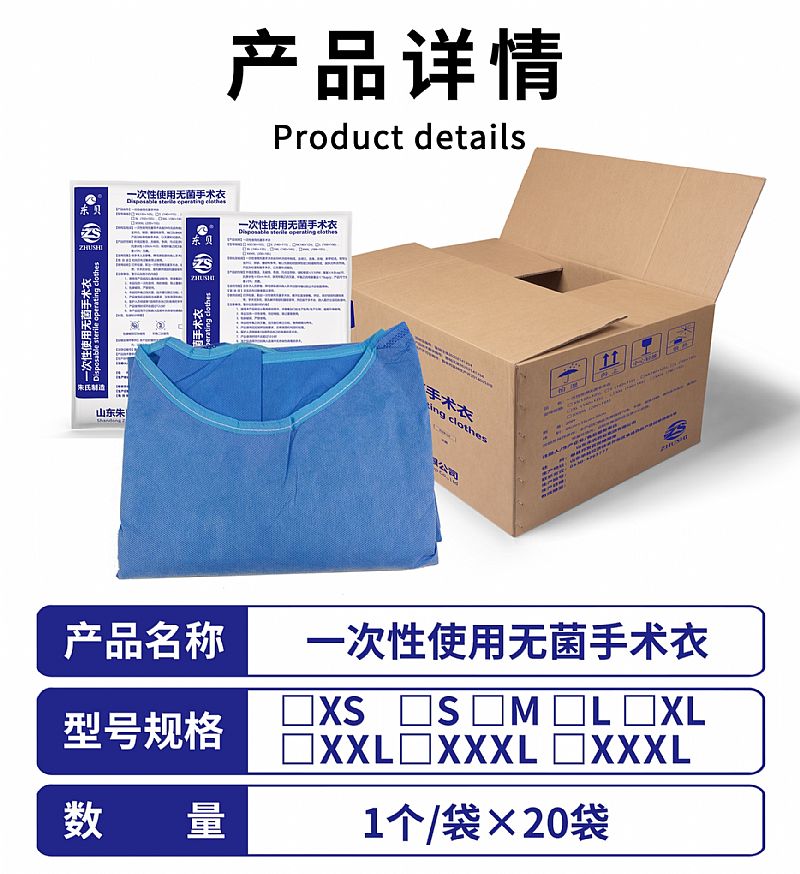 | 補(bǔ)充說明 | [使用說明]打開包裝,取出一-次性使用無菌手術(shù)衣,展開后直接穿戴。然后,系好頸部和腰部系帶;手術(shù)完畢后,首先解開頸部和腰部系帶,然后脫下手術(shù)衣,放入醫(yī)療垃圾回收袋中, |